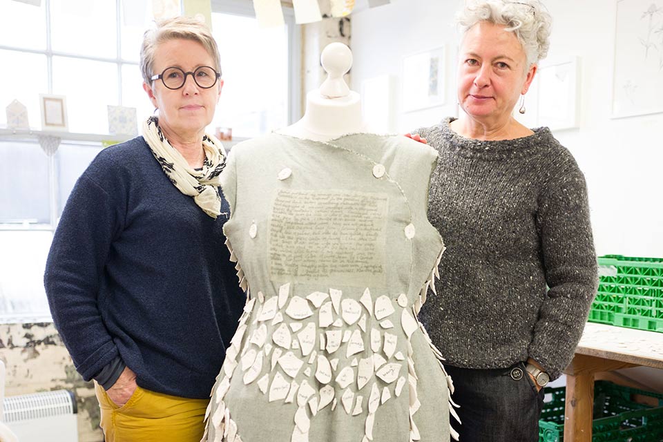Emma Scholin Tipping and Judith Bishop are the two artists responsible for the design and creation of ‘The Clay Frock’. Emma having a background in dressmaking, design and mosaics, Judith in textiles, design and technology; with the two sharing a common love of ceramics and a relationship founded in their participation in the British Ceramics Biennial Clay School.