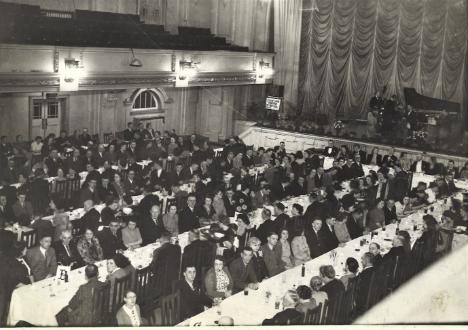This is a photograph of the Mason's Ironstone Centenary Dinner which took place on the 19th December 1952, King's Hall, Stoke. The Centernary Dinner marked the bicenterary of the birth of Masons Ironstone founder, Miles Mason. King’s Hall, was built in 1910-11 as an assembly hall, ballroom, exhibition hall and theatre on Kingsway, behind the Town Hall. Many of the big pottery factories held celebration dinners and parties there.