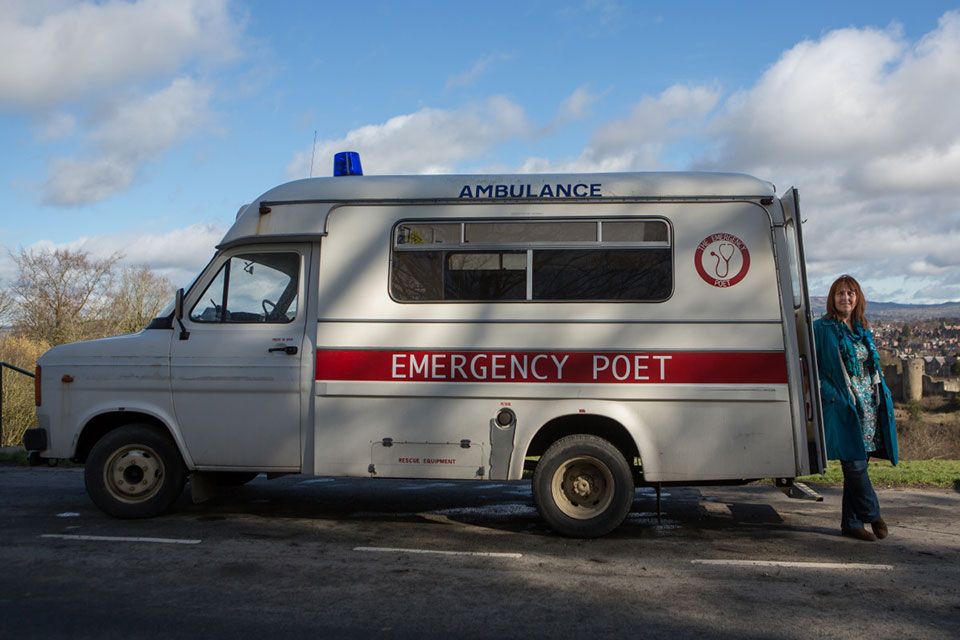As the Emergency Poet, Deborah offers consultations inside her vintage ambulance, prescribing poems as cures. Deborah’s submission, ‘Poetry on Prescription: The Emergency Poet’, pictures her standing next to her 1970s ambulance.
