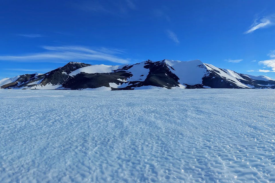 While most Antarctic researchers drill deep into the ice to extract their samples, we were able to use a technique called horizontal ice core analysis. As you travel closer to the mountains of the ice sheet, the ice that been brought to the surface by these winds progressively gets older. We then were able to take surface samples on a straight, horizontal line across the blue ice area to reconstruct what happened to the ice sheet in the past.