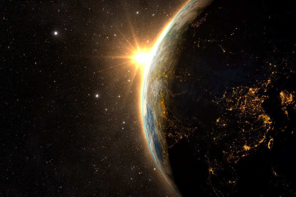 The Earth spins steadily, once every 23 hours and 56 minutes. During this time, the Earth also moves a little further on its orbit around the Sun, which takes one year to complete. This means it needs to turn a bit more – for four minutes – until it faces the Sun again. This means that one day on Earth lasts 24 hours.