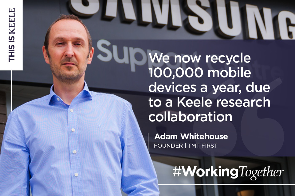 Newcastle-under-Lyme based TMT First worked with Keele through the Smart Energy Network Demonstrator (SEND) project, which saw them investigating ways of repairing and processing the components within mobile phones, especially the screens and batteries.