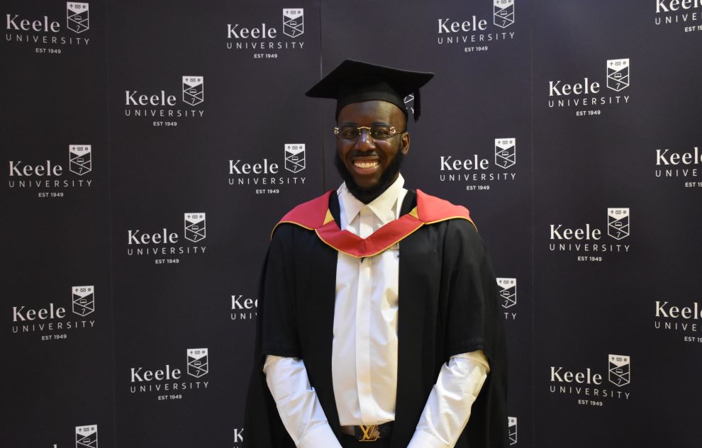 A former professional basketball player is now helping Premier League footballers to improve their mental health and wellbeing after graduating with a Master's from Keele University.