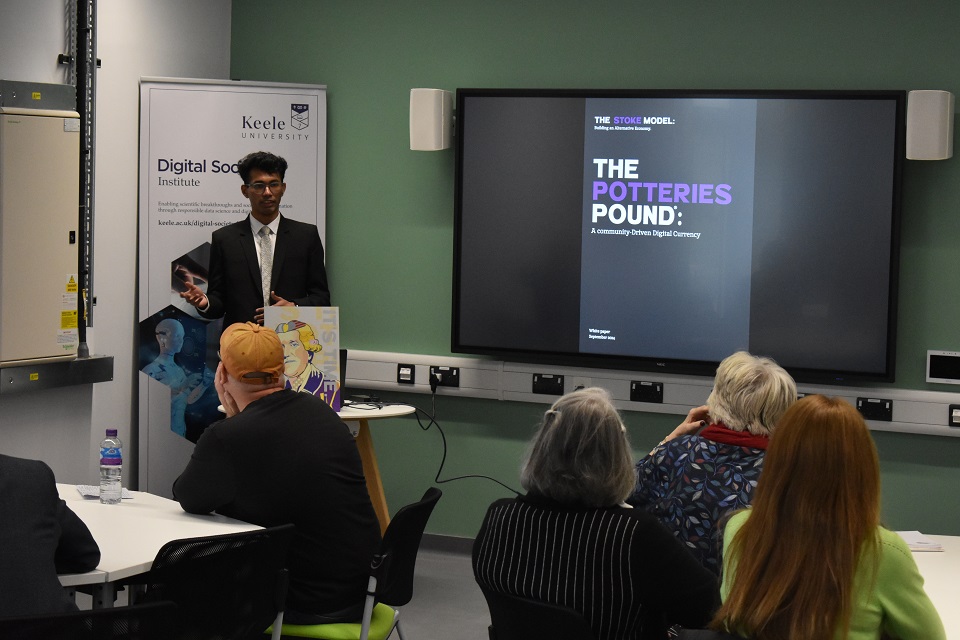 The approach has been developed by a community benefit society called #BeKind as part of a wider project called The Stoke Model. Researchers at Keele have been working with #BeKind to develop the digital currency scheme, and today they presented a White Paper, 'The Potteries Pound: A Community-Driven Digital Currency', at a launch event at Keele Digital Society Institute to business and community leaders.