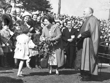 Photo Right: Lindsay with HRH The Queen Mother at the official opening of the College.
