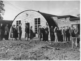 The third catalyst was the acquisition of Keele Hall itself. The Hall had been occupied by various military forces during the war, accumulating a range of temporary buildings and a new layer of neglect. Colonel Sneyd didn't want to live in the distant, dilapidated residence so Horwood offered to buy it from him for the university. Sneyd resisted grimly and only when he was distracted by the radio commentary on a horse race (his horse won!) did Horwood finally persuade him into giving up the ancestral home... Further "fixing" and bargaining secured the military buildings from the War Department and a physical home for the university was acquired. The first "cheap and cheerful" buildings began to be planned on a tight budget to house the essential functions and laboratories.