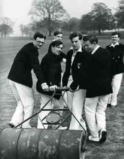 The Arboretum proudly planted around the lakes by the Sneyd family was in a very sorry state. Even the elegant and temperamental Keele Swans were yet to take up temporary residence. The glorious mature trees that adorn the campus now were mostly absent or mere saplings – but hundreds of trees planted over many years have increasingly added colour, shelter and beauty. An area of 26 acres was allocated for playing fields but the work to prepare the ground was protracted and was not completed until 1954. This work was delayed by spells of heavy snow and record breaking rain. The essential equipment for the early students was a pair of hard-wearing gumboots or Wellington boots - and they proudly adopted the nickname of "the Welly Brigade". Further problems arose from the heavy red clay soil which has hindered every effort at landscaping and construction on the campus and causes glutinous mud to appear in places after any lengthy spell of rain.