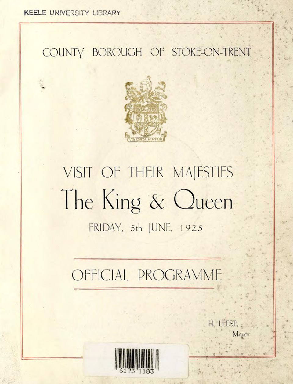 The programme for the 1925 Royal Visit to Stoke-on-Trent is available in the Keele University Library.
