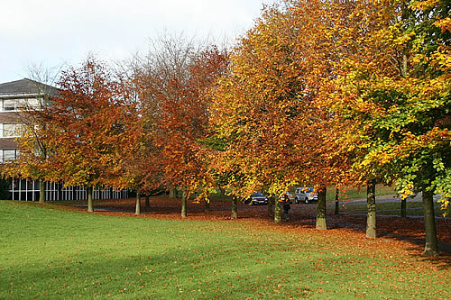 An avenue of 31 Beech Fagus sylvatica were donated by her in 1990 on her retirement. They are planted between the Students Union car-park and Chancellor's Building.
