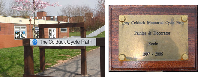 A Flowering Cherry Prunus 'Accolade' planted in his memory by the Nursery (square N4); alongside the cycle path which is also named after him.
