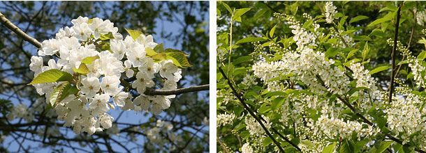 Wild Cherry Prunus avium and Bird Cherry Prunus padus