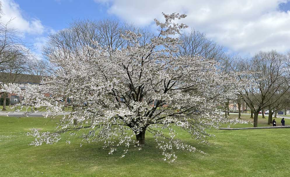 Keele University has been planted with flowering cherries since the first ornamental grounds were laid out in the late 1940s. Since then various flowering cherries have been added around the campus to the extent that springtime on the campus has become synonymous with cherry blossom. This is now one of the defining features of the campus.