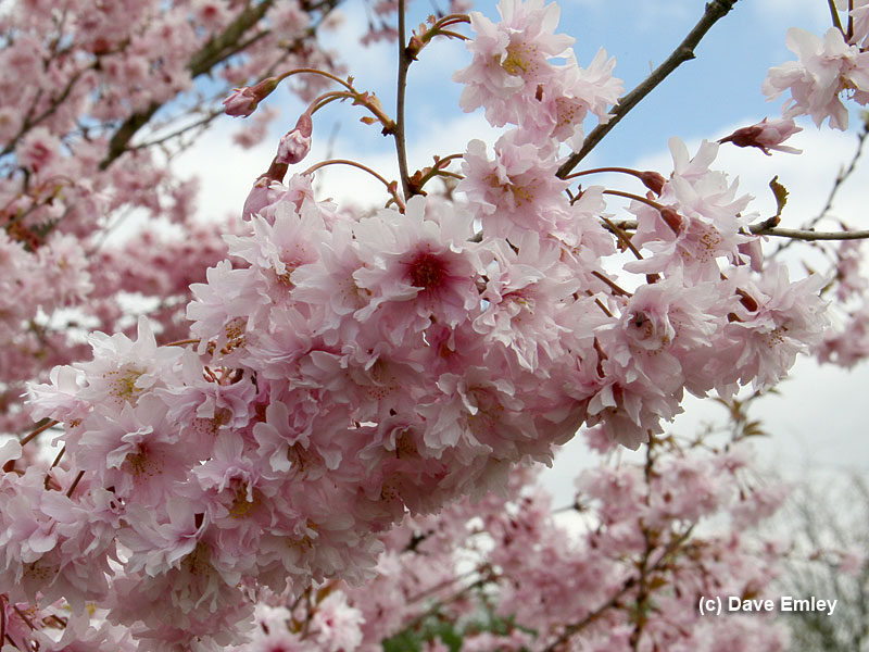 Flowers in pendant clusters of 1 or 2, pink (RHS-53-D) in bud opening to lighter pink (RHS 55-D), c. 3-3.5 cm dia. with c.20-50 petals. Flowers early-mid April in Tokyo.