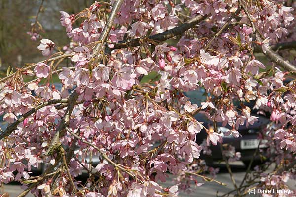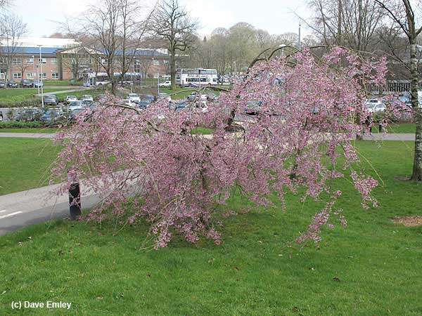 The long-stalked, rosy-pink flowers are produced from deep red buds borne on slender weeping branches throughout April.