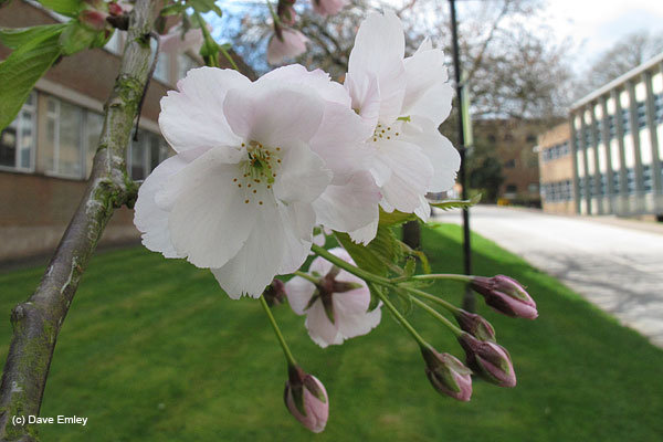 Blush-white medium-sized semi-double flowers, early to mid season. Young foliage is pale bronzy-green coloured. Sometimes shows good colour in late autumn.