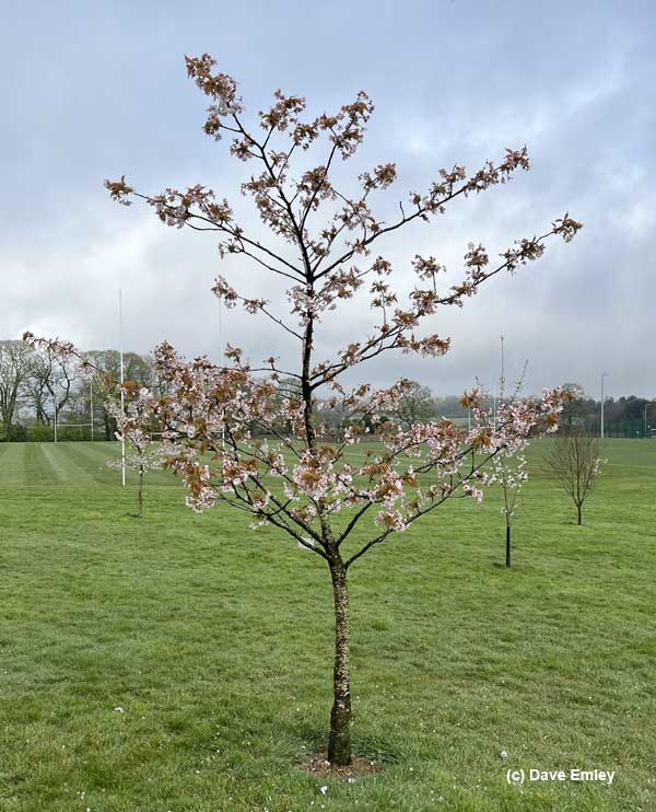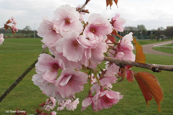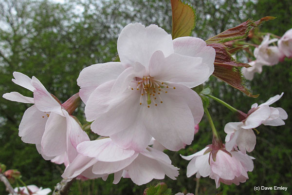 Single or semi-double medium-sized, pale pink flowers that darken with age, early season. Young foliage is bronze-coloured. Colours well in autumn.