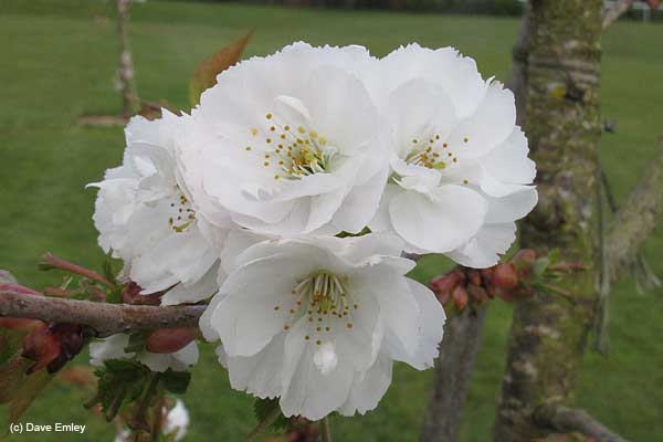 Small, white, semi-double flowers, early to mid-season. Young foliage is bronzy-green coloured. Shows good autumn colour.