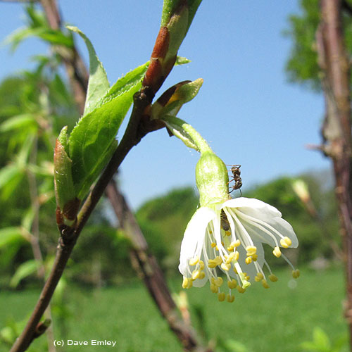 Medium to large tree to 8m high by 4m wide. It is mainly grown for the colour of its bark. The small white flowers emerge with the leaves. The leaves turn yellow in the autumn. Propagated from a tree growing in the Dorothy Clive Garden, close to Keele.