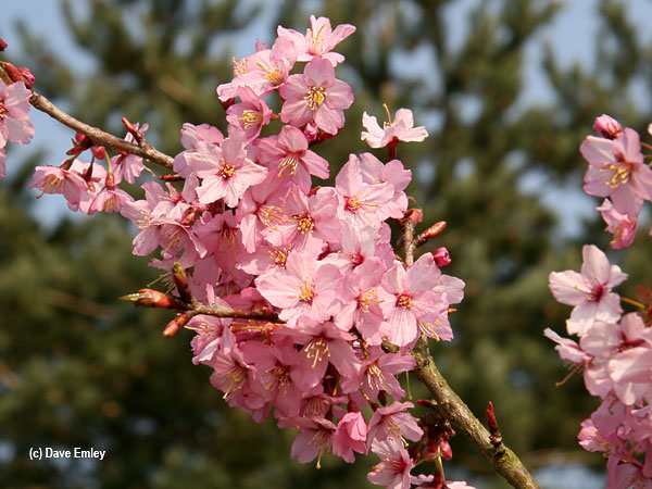 The large single blossoms, 30-40mm across, are a deep pink, similar to Prunus sargentii but flowering from the end of March to mid-April before the leaves appear. The leaves are bright green and the autumnal colours yellow to coppery-orange. It has a broad upright habit making it suitable for the smaller garden. This image is from an earlier tree that has since died.