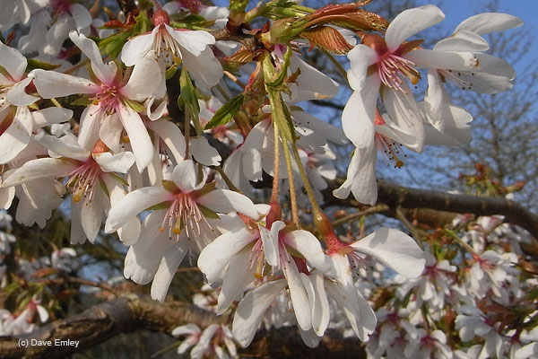 A white-flowered weeping variety raised by Hillier’s. The flowers about 20mm across, pale pink in bud but opening in March and April to pure white. It forms an elegant weeping tree suitable for smaller gardens.