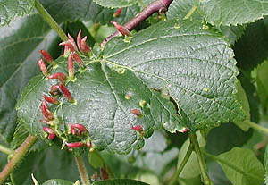 The surface of the leaves are often covered in small, reddish, conical warts or Nail Galls (formed by a small mite Eriophyes tiliae) - the other two species don't seem to get these as frequently. In autumn the leaves turn pale yellow.