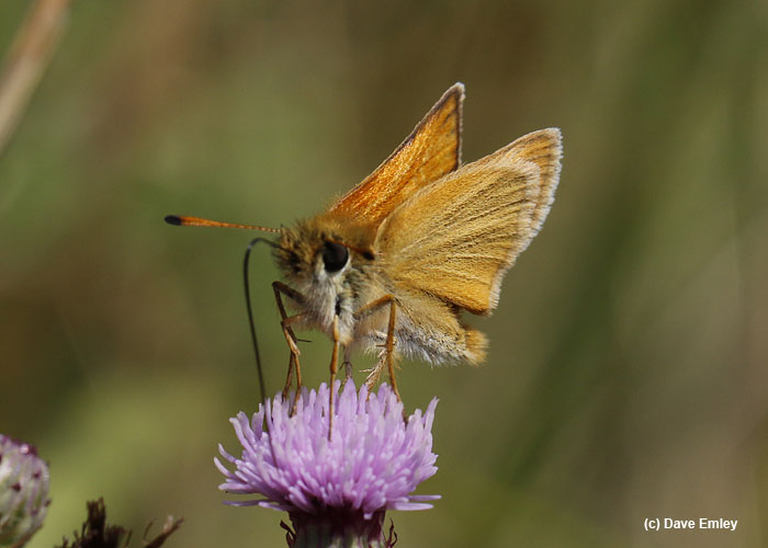 It can be confused with the Small Skipper but the tips of the antennae in this species look like they have been dipped in ink, whereas on Small Skipper they are orangey-brown.