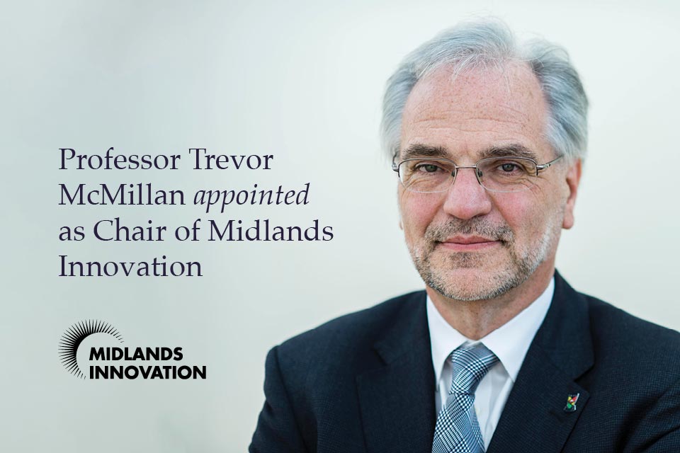 Professor Trevor McMillan has been appointed as the new Chair of Midlands Innovation, a collaboration of the region’s top eight research-intensive universities that collaborate on research, development and innovation.