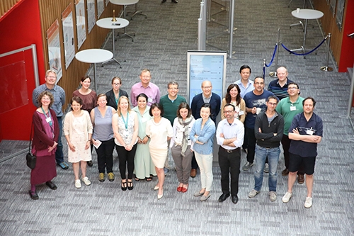 Picture shows workshop attendees in the EBI foyer (Dr Merrick second from left, back row)