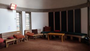 The East Chapel is usually set aside as a place of prayer and reflection. Many find that in the midst of a busy Keele day it is a blessing to be able to come in to a quiet (well, most of the time) space to pray. There is a board there where you can put prayer requests.