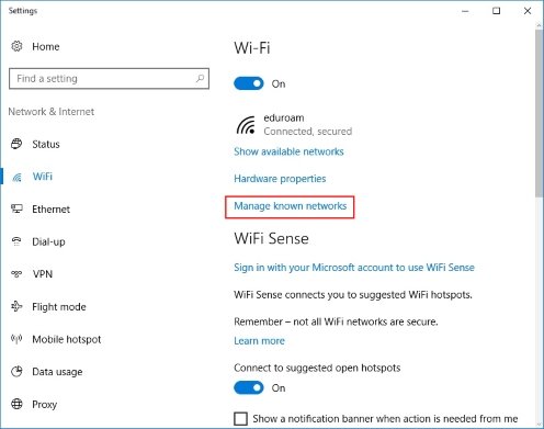 3. Under Manage Known Networks, choose eduroam and then select Forget.