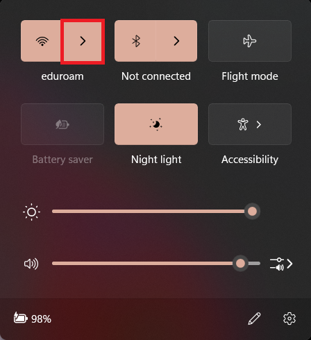 2. Click on the arrow next to the Wi-Fi icon.
