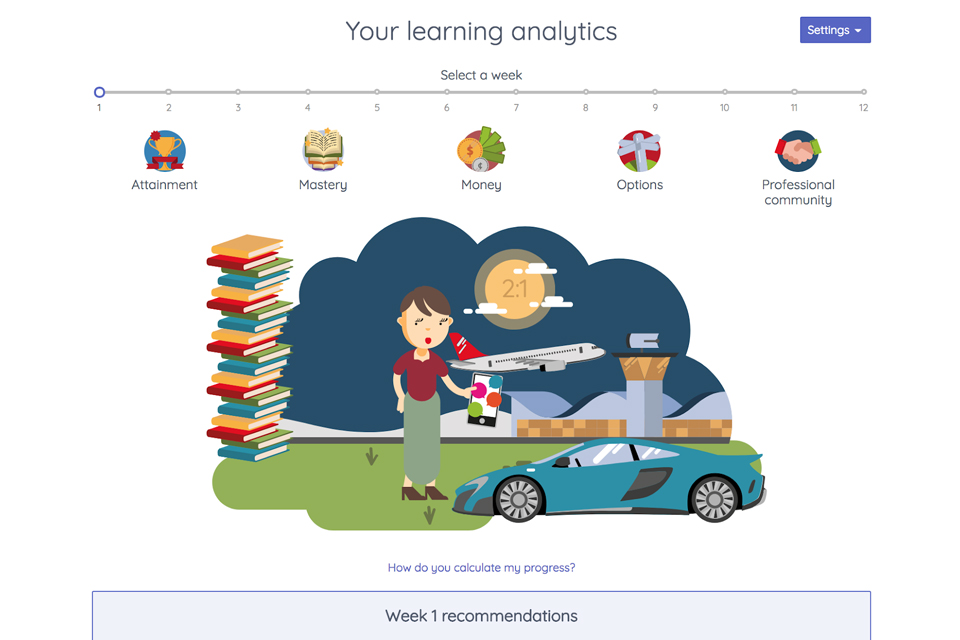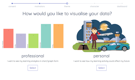 The new LA system uses a novel approach to understand the reasons why students want to study at university, and maps their engagement and predicted outcomes to these motivations, with weekly personalised notifications and feedback. Students are also given the choice of how to visualise the data either via a chart-based view or to be represented as themselves.