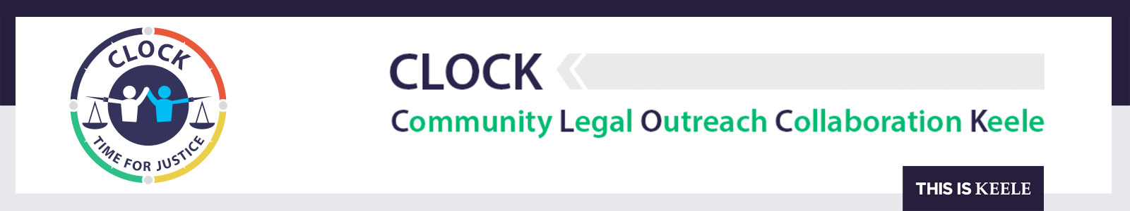 The Community Legal Outreach Collaboration Keele (CLOCK) is a unique and innovative project bringing together universities, law firms, barristers chambers, mediation, charitable and court services to educate, assist, monitor and promote access to justice for communities facing barriers to access to justice.