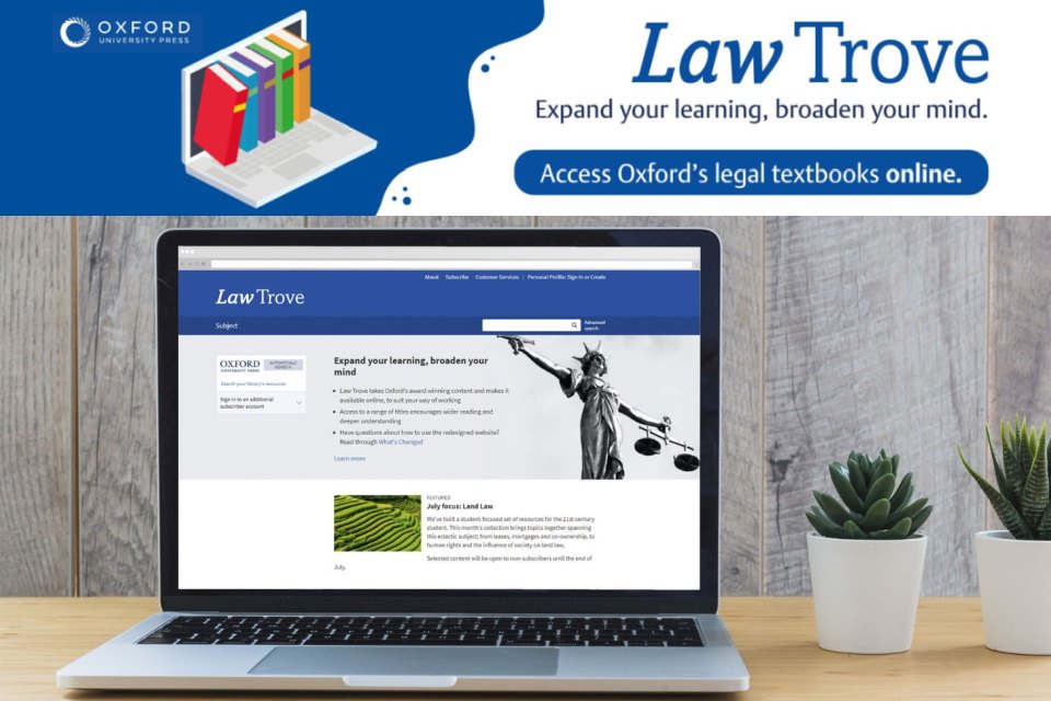 The Library has started a pilot subscription to Law Trove. This collection gives access to 194 ebook titles published by Oxford University Press covering all areas of law, including business, contract, criminal and more.