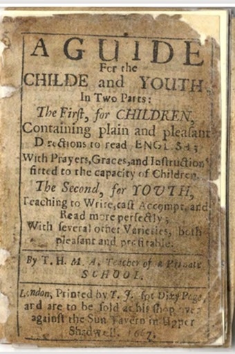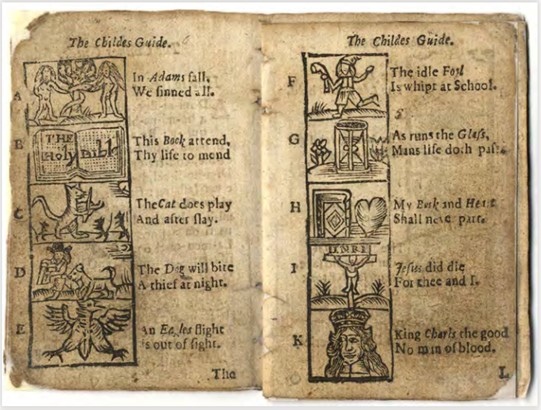 A Guide for the Childe and Youth (1667) Rhyming alphabet with woodcut illustrations