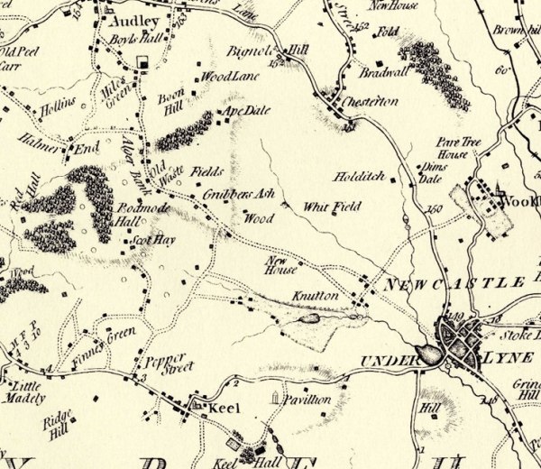 Map of Apedale from A Map of the County of Stafford by William Yates, 1775