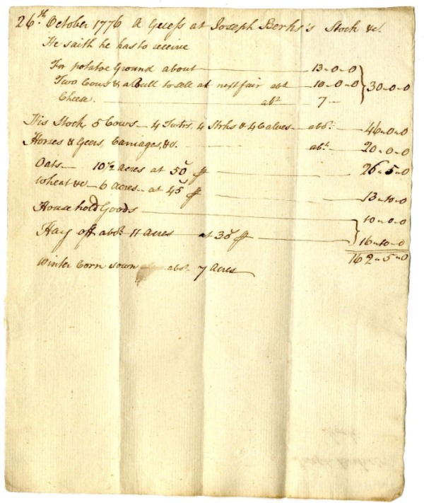 'A Guess at Joseph Berks’ stock', October 1776 (Sneyd Papers GB172 S1647 Keele University Library)