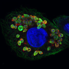 Image: Macrophage infected with Leishmania major amastigotes (Molecular Microbiology Vol. 90, November 2013)