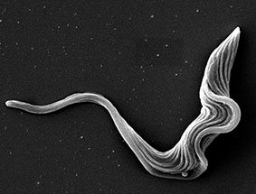 Image: Scanning electron micrograph of Trypanosoma brucei bloodstream form parasite