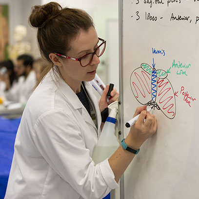 This modern and spacious laboratory has room for student groups to carry out anatomical examinations simultaneously and also provides facilities for the display of pre-prepared material, models, and posters, as well as areas for teaching and teaching preparation. It also has multiple display screens, two teaching lecterns and an overhead HD camera.