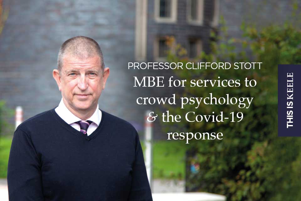 Professor Clifford Stott receives the award for his services to crowd psychology and the Covid-19 response, thanks to his years of research and his work as a member of the Government’s Scientific Pandemic Insights Group on Behaviours (SPI-B) a sub-committee of the Scientific Advisory Group for Emergencies (SAGE).