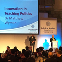 Innovation in Teaching Politics Award for Keele's Dr Matthew Wyman