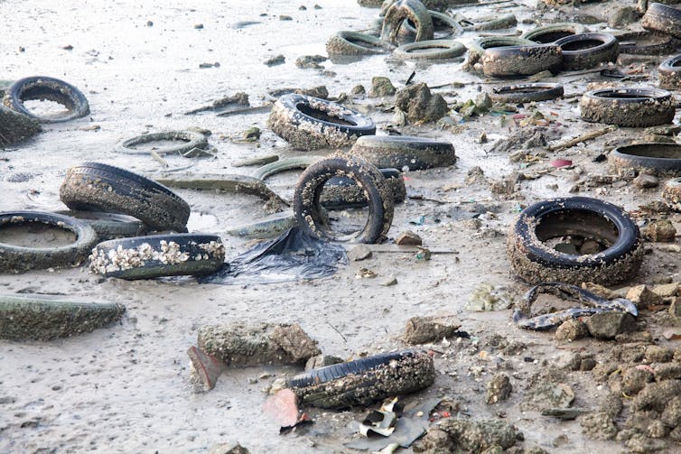 Tyres are made from rubber and around 60% plastic (styrene butadiene). The friction, pressure and heat of driving wears tyres down so much they produce an estimated average of 63,000 tonnes per year of plastic dust in the UK alone. If blown into the atmosphere, that dust can contribute to the poor air quality identified by the World Health Organisation (WHO) as a cause of premature deaths.