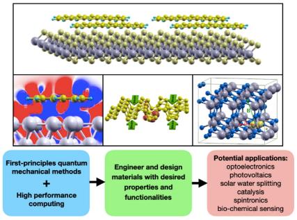 The Computational Materials Physics group, led by Dr Juliana Morbec, is devoted to computational study and design of materials for technological applications. We use high-performance computer simulations based on state-of-the-art first-principles quantum mechanical methods to investigate the electronic, magnetic, optical and transport properties of different systems, from molecules to two-dimensional (2D) materials and surfaces. Our goal is to gain deep understanding of properties, processes and phenomena on atomic level in order to predict and design materials for spintronics, optoelectronics, sensors, catalysis, and energy conversion. We work in close collaboration with experimentalists joining efforts to explore novel materials and discover new properties. The group's current interests include (i) 2D materials and van der Waals heterostructures for flexible and portable applications, (ii) hybrid organic/inorganic materials for optoelectronic applications, (iii) transition metal oxide and nitride semiconductors for solar water splitting, and (iv) nanomaterials for spintronics.
