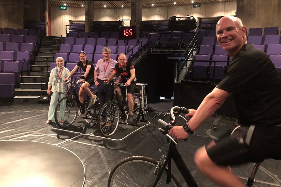 Researchers at Keele University have teamed up with a local theatre to study how much “pedal power” it takes to power a theatre.