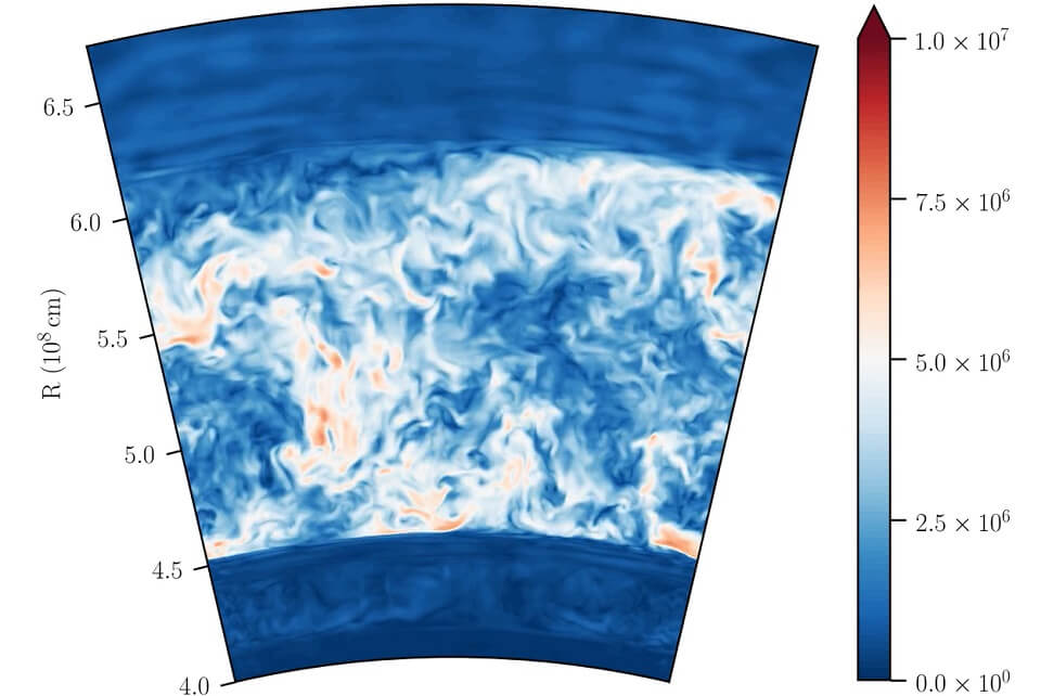 But new advances in computer simulation technology have enabled the researchers to produce a 3D simulation of an entire stellar phase for the first time ever, continuously showing a portion of the star from the early development of this phase through to its complete exhaustion.