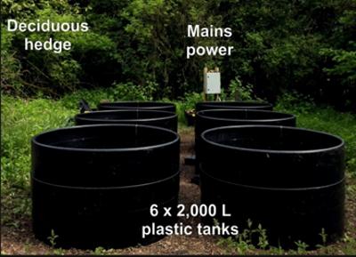 Within the facility, there are six 2,000L water tanks with pumps that can be used for various taphonomic teaching and research projects. |