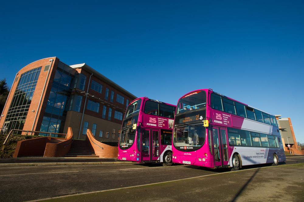Keele benefits from strong transport links both locally and nationally, with regular bus services to and from the campus and easy access to the local train station. A regular bus service operates between the campus and Hanley via Newcastle and Stoke-on-Trent. There are several bus operators which travel to and from Keele, the main route is the 25.
