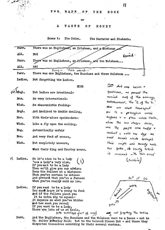In '69, Malc certainly did the Colemanballs bit with Linden's slow-motion "First Class Honours Answer." He also interviewed Francis Beckett, playing Dave Ingram, on the subject of Gypsies. It brought the house down - and Dave Ingram's rapid exit. Francis's Ingram was as good as Mike Ridley's the year before, but more audible. Linden West's other great triumph was singing "the 18th Day of November" in a staging of Brendan Behan's The Hostage. Now there was a playwright."
