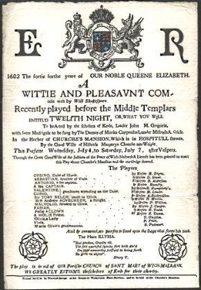"The first Shakespeare play was Twelfth Night. I have the Elizabethan playbill before me and it was on July 4th - 7th (I presume in 1951) in Churches’ Mansion, Nantwich. This was a beautiful Elizabethan house which only just escaped the Great Fire of Nantwich. We were invited by the owners, Dr and Mrs Myott, the initial Pioneer dramatists performed in the open air using the garden with the house as a backdrop. They generously took on a motley crowd of undergraduates and a fine production ensued.." Bill Lighton (1954)